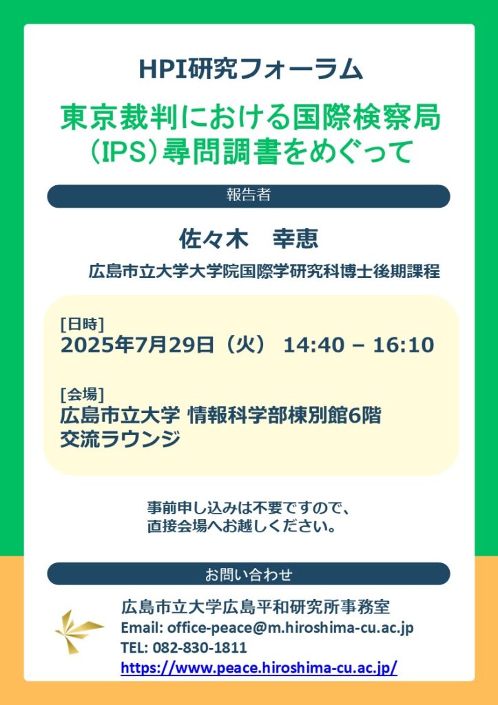 The Hiroshima Peace Institute held an HPI Research Forum as follows: